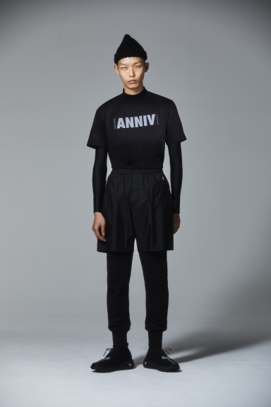 立领短袖T恤-上身ANNIV印花