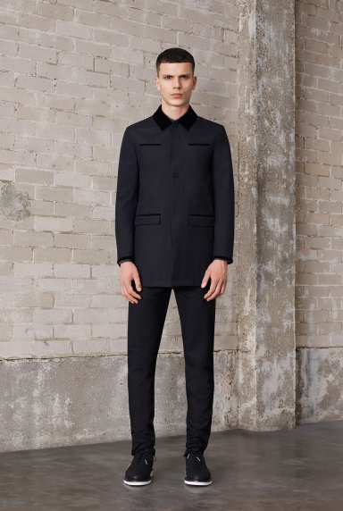黑色斜纹棉布裤,带缎面后育克和幻彩刺绣