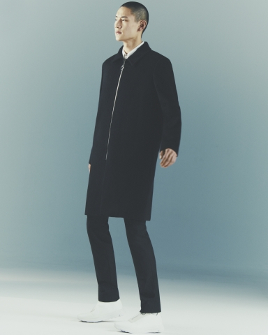 LONG LENGTH ASYMMETRICAL ZIP OPENING MAC COAT W/G LOGO SILVER STUD ON COLLAR