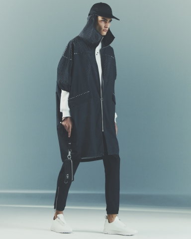 OVERSIZED ALLOVER PUNCHING HOLE RAIN MAC PARKA W/HEAT FUSE LASER CUT POCKET AND CUFF