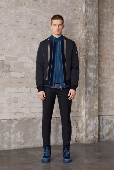 Luxurious green and grey varsity crew zip through with desruptive pinstripe print